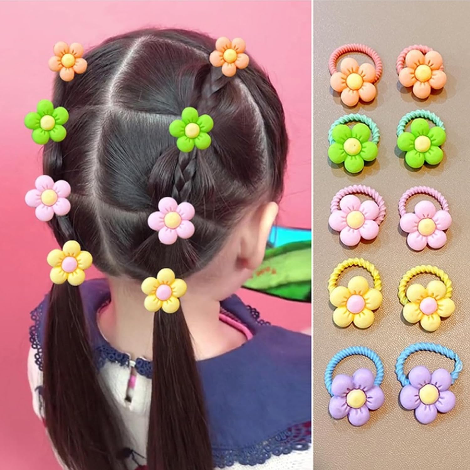 Vibrant and Fun Designs: Colorful hair ties, elastic bands, and flower hair bands for a playful touch.