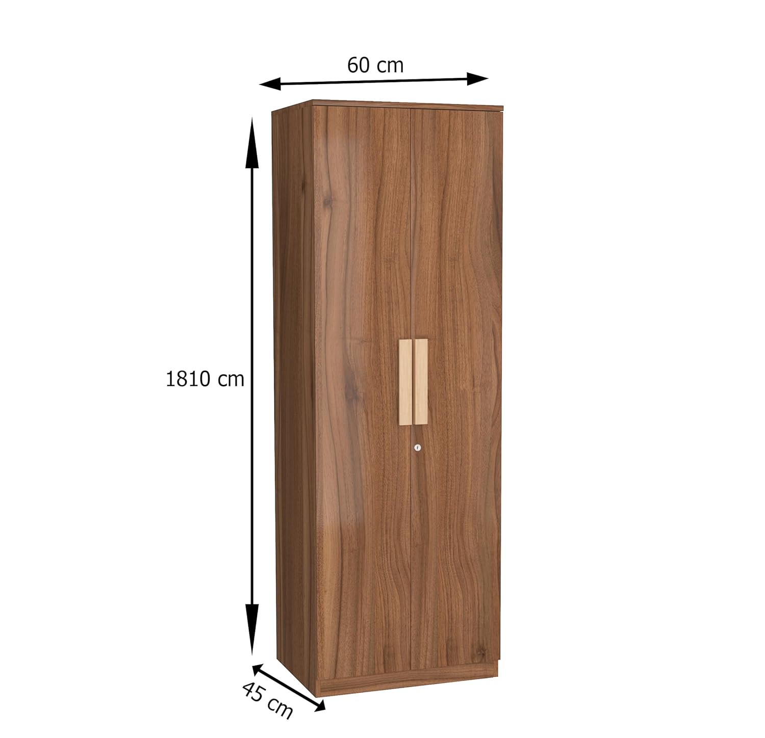 A practical wardrobe built for real use. Constructed from 17mm engineered wood with an 18-inch depth, this unit gives you generous hanging space plus well-sized shelves for folded clothes, bags and boxes. The heavy-duty metal hanging rod keeps shirts, suits and dresses straight; adjustable shelves let you customize storage for shoes, linens or seasonal items. Solid wooden handles are comfortable to grip and pair naturally with the grain-finish doors.