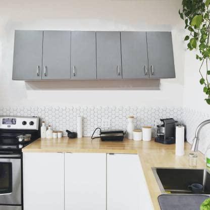 NISHAL Furniture Modular Kitchen Wall Unit Plywood Sunmica Kitchen Storage Cabinet (Finish Color – Grey & White, Pre-Assembled)