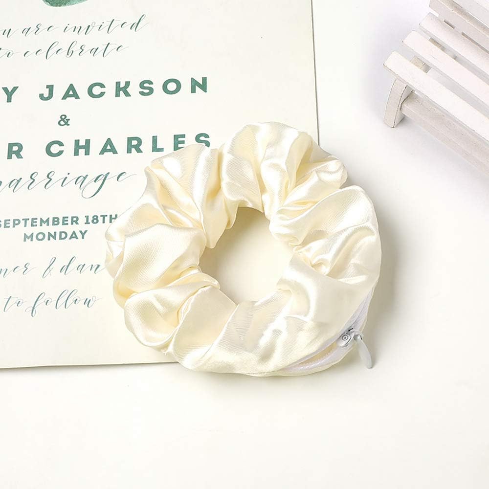 Nnr Satin Silk Scrunchies With Secret Zip Pocket Rubber Band For Girls And Women, Pack Of 4 Pcs – Multicolor 12