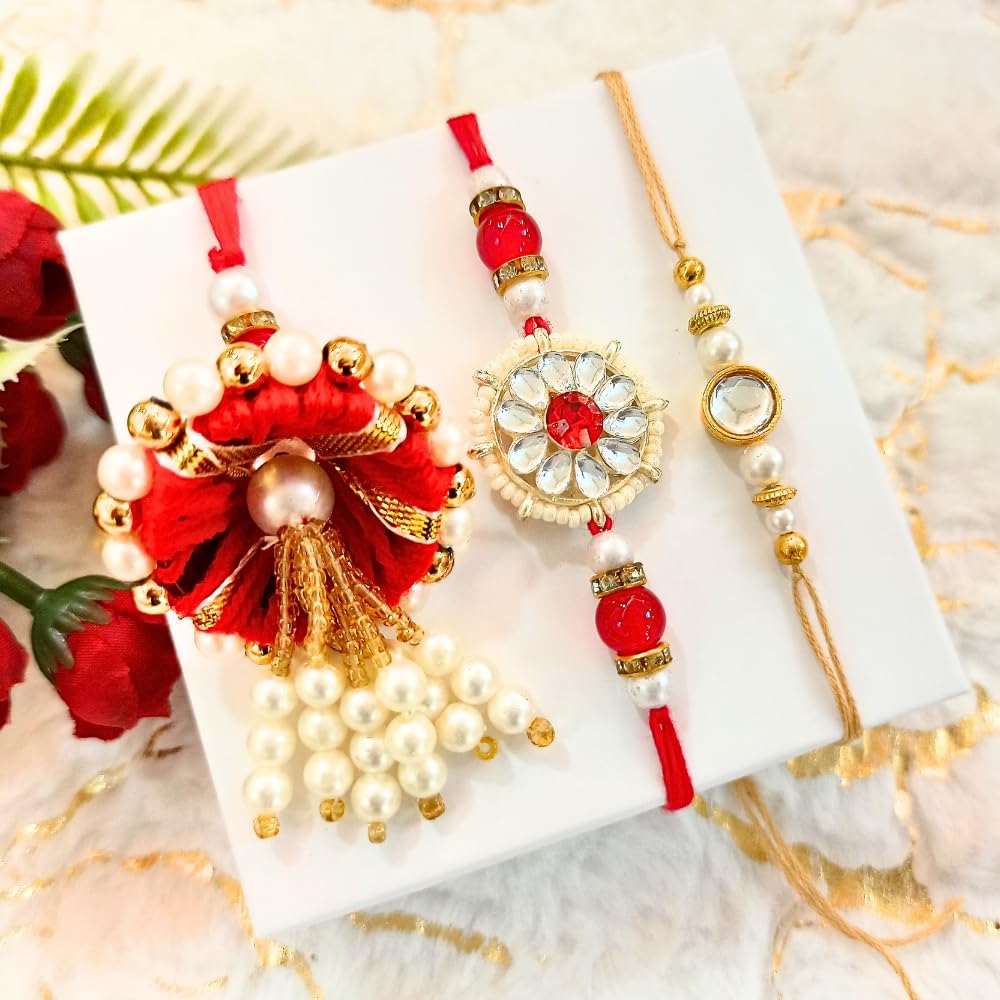 Elegant Rakhi Set: Make this Raksha Bandhan unforgettable with our 3 elegant and unique Rakhis, specially crafted to reflect the bond you share with your brother. Designed with intricate details and a touch of tradition, these Rakhis are more than just threads—they’re symbols of love, protection, and cherished memories.