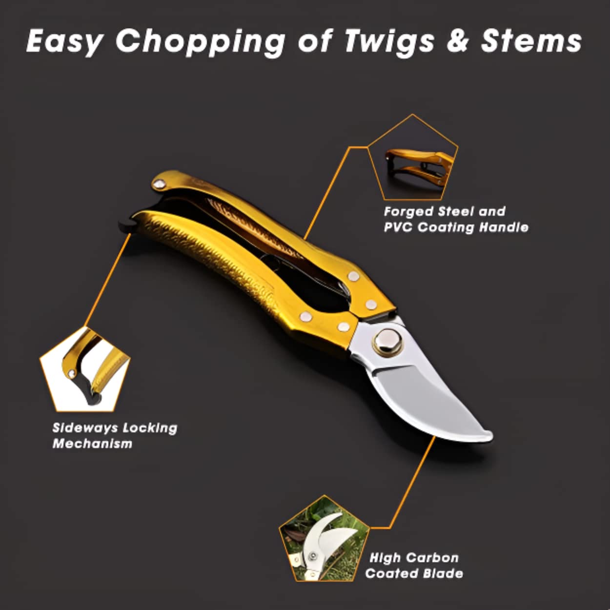 Garden Scissor: These quality snips come with Carbon steel sharpened blades and are ready to tackle all of your deadheading, trimming, and shaping needs for your roses, annuals, vegetable and small flower gardens