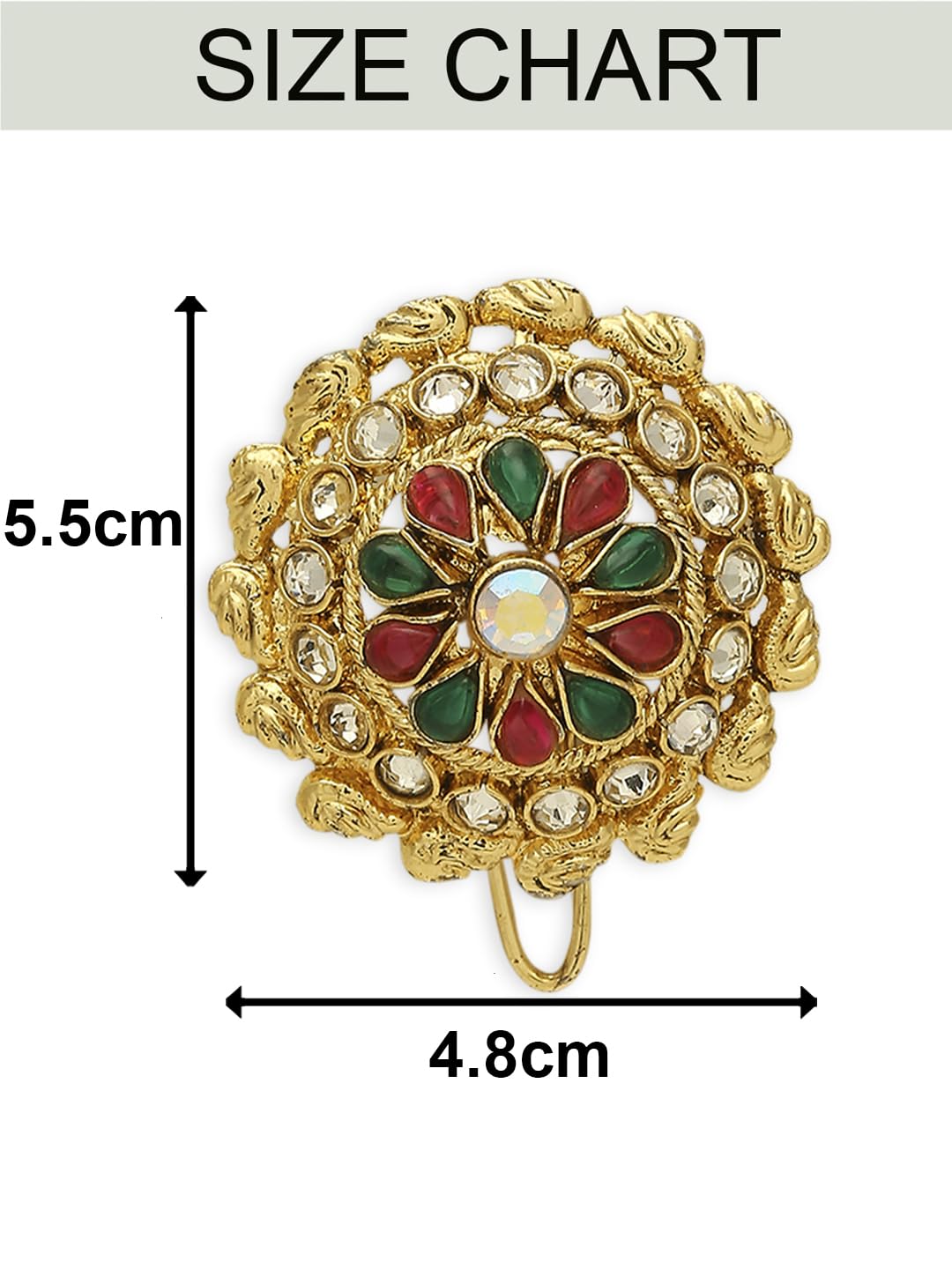 OOMPH Jewellery Red Maroon & Green Stones Ethnic Hair Bun Pin – Juda Pin | Floral Design with Pearls For Women & Girls Stylish Latest (HST1_O)