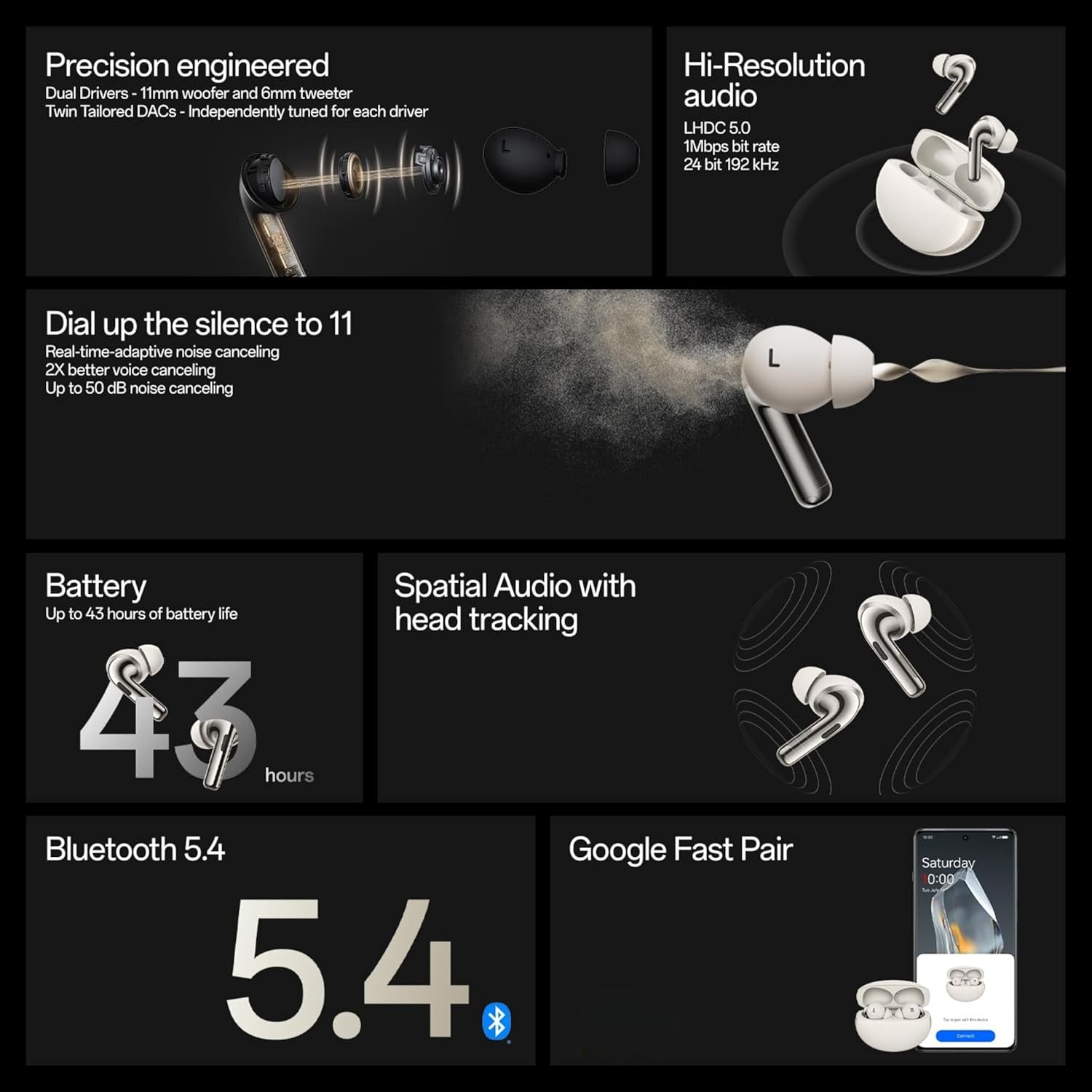 Premium Dual Driver Sound – Advanced dual drivers with dual DACs deliver powerful bass, clear vocals, and rich detail, enhanced with Dynaudio-tuned EQ for immersive Hi-Fi audio.