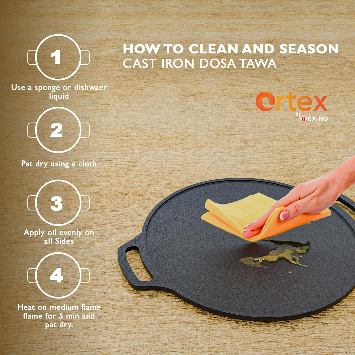 Durable Cast Iron Dosa Tawa: Made from high-quality cast iron for long-lasting performance and even heat distribution.