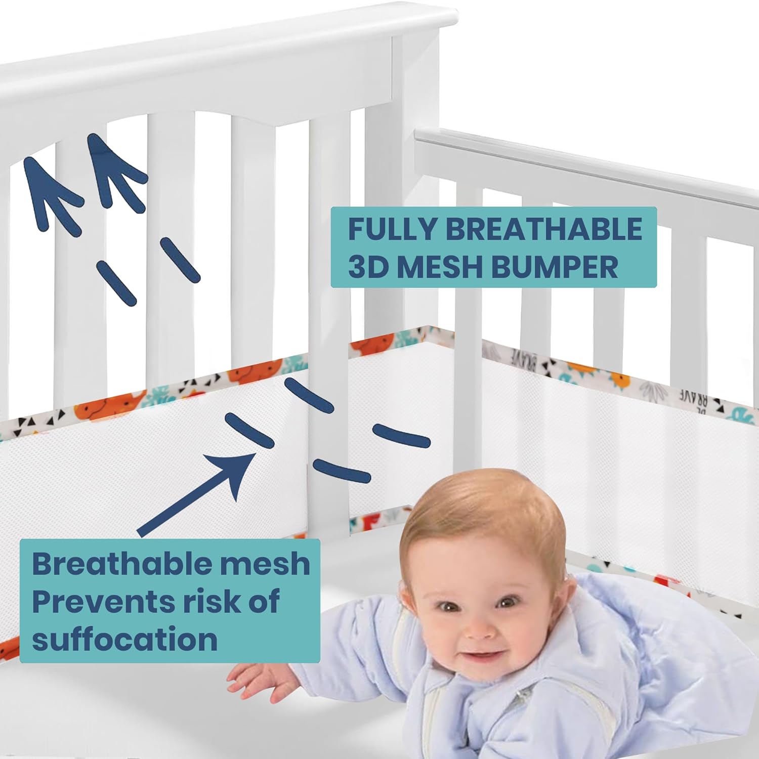 Keeps baby securely nestled inside crib and prevents arms and legs from becoming wedged in crib slats