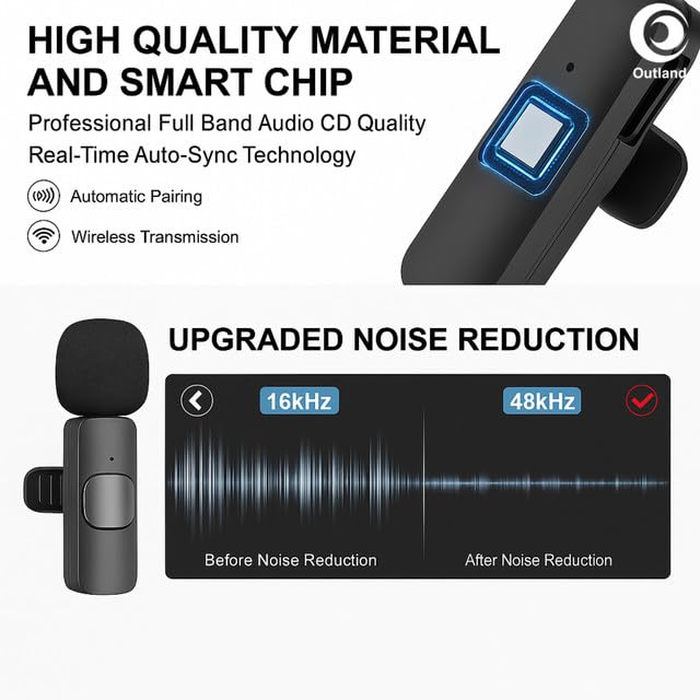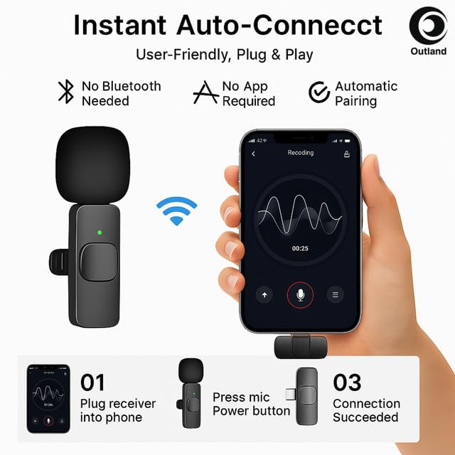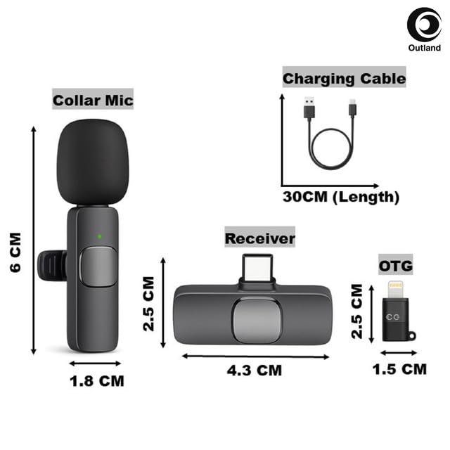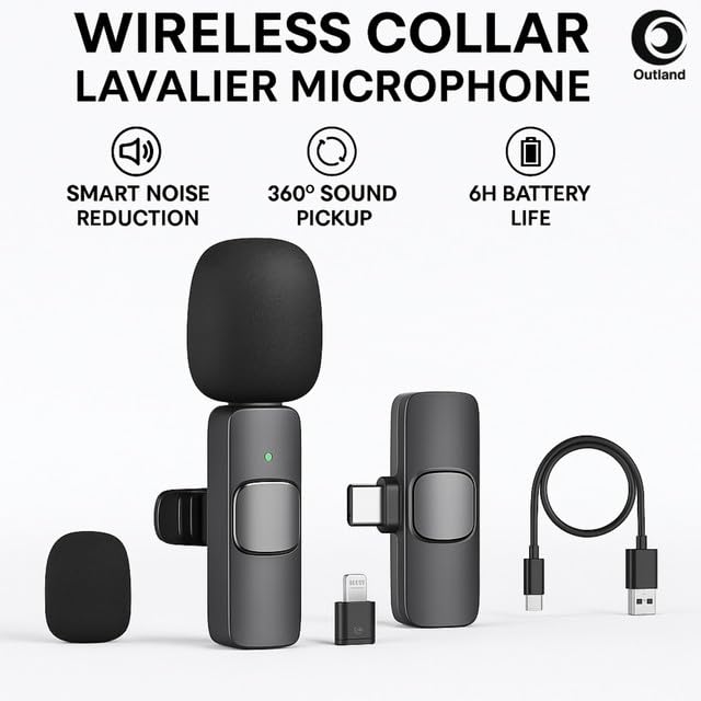 Perfect for Content Creators: The Outland Wireless Collar Clip-On Mic Offers Crystal-Clear Audio for Youtube Videos, Vlogs & Online Teaching.