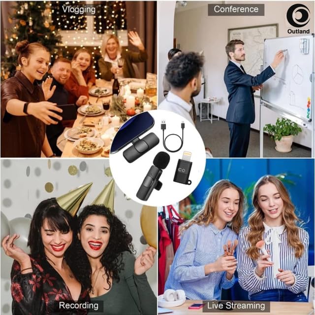 Introducing the Outland Wireless Mic Lavalier K8 Collar Mic System is a high-performance, plug-and-play wireless microphone designed for Android and iPhone users who create content for platforms like YouTube, Facebook Live, Instagram Reels or need crystal-clear audio for online teaching, interviews, vlogging, or video recording. With no need for Bluetooth pairing or external apps, the mic system connects instantly via its Type-C or Lightning receiver, making it incredibly user-friendly. Featuring advanced noise reduction and an omnidirectional pickup pattern, the K8 delivers clear, professional-quality audio by effectively isolating your voice from surrounding noise even in busy environments. The compact, clip-on design makes it ideal for hands-free use during live streams, classes, or interviews, while its strong wireless transmission and up to 6 hours of battery life ensure uninterrupted recording sessions.