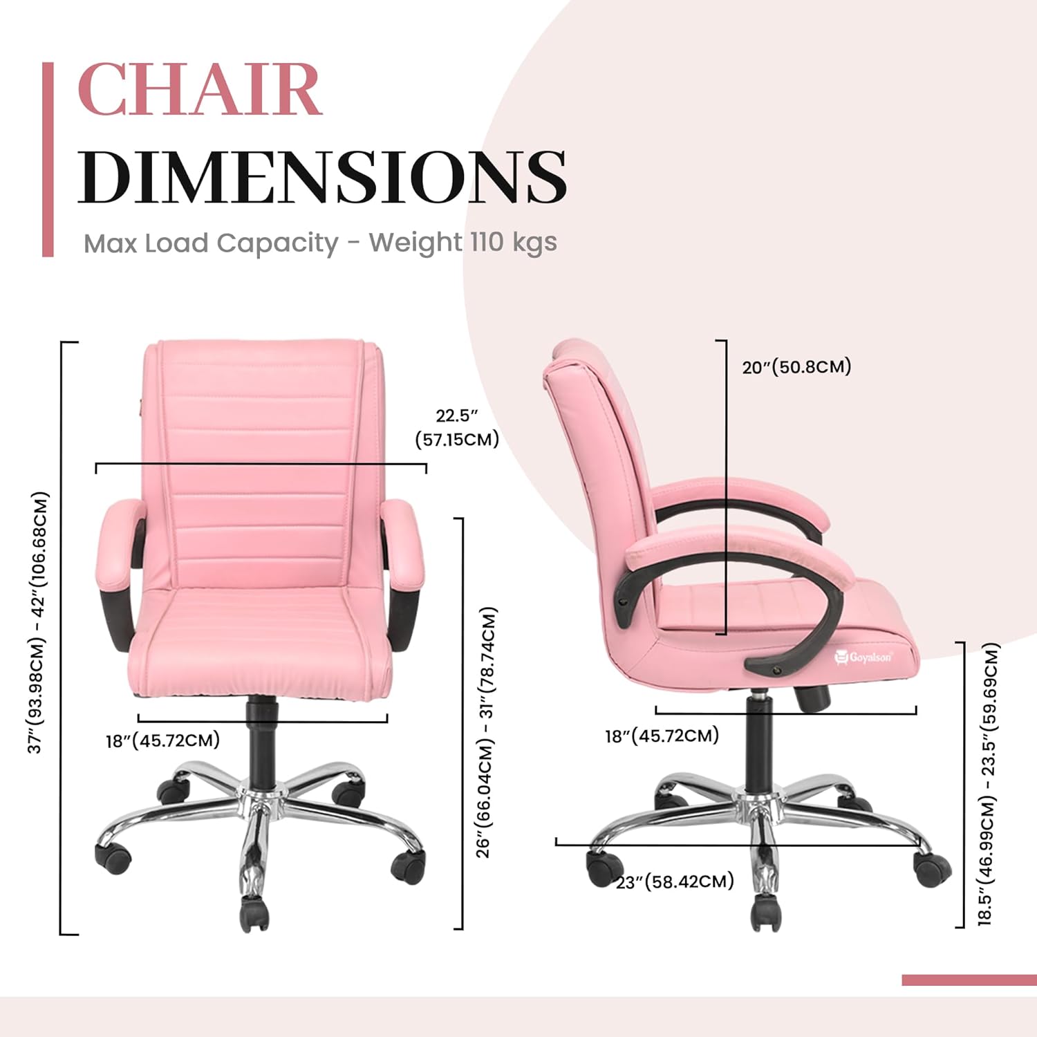 Perfect for long hours of working with perfect back support of cushion foam padding.