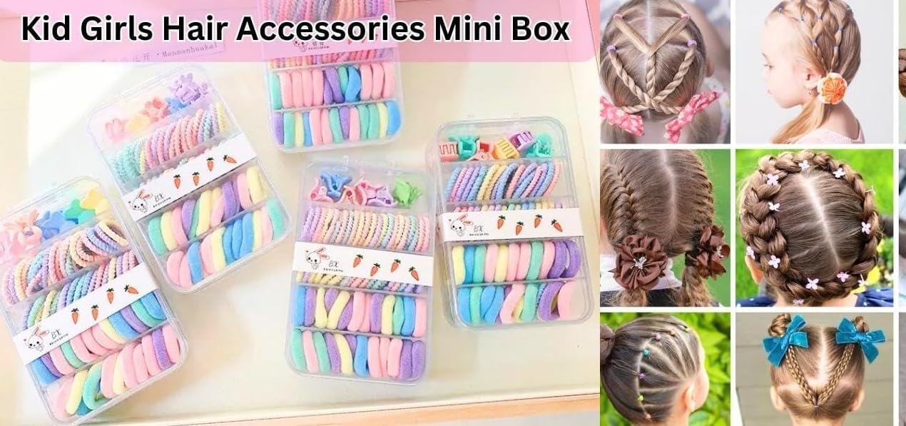 Pastel Hair Accessories Set for Girls – 70+ Floral & Elastic Hair Bands with Mini Clips in Transparent Organizer Box