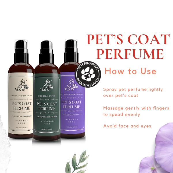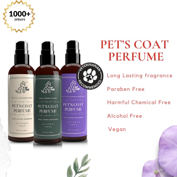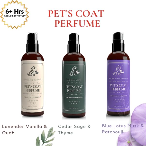 Pet Coat Perfume, Set of 3 Fragrances, 100 ml Each, Alcohol-Free, Long-Lasting Scents – Lavender Vanilla & Oudh, Cedar Sage & Thyme, Blue Lotus Musk & Patchouli