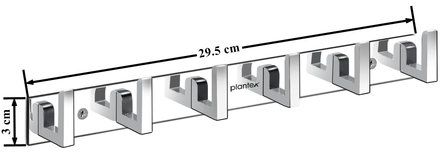 Plantex aluminium hook rail for home comes with 6 anti-rusting and L-shape hooks to hang your keys, brushes, id-cards, towels, clothes, robes or kitchen essentials according to your needs.