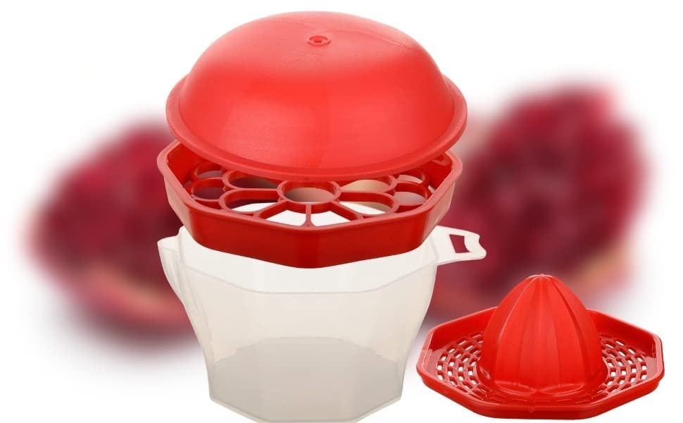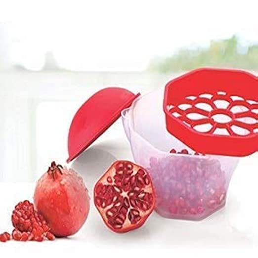 Colour: Multicolour, Material: PlasticPackage Contents: 1-Piece Bowl, 1-Piece Orange Juicer, 1-Piece Rubber HookJust cut and hit to get anar seeds in a containerNo strains on your handEasy to useEasy to clean