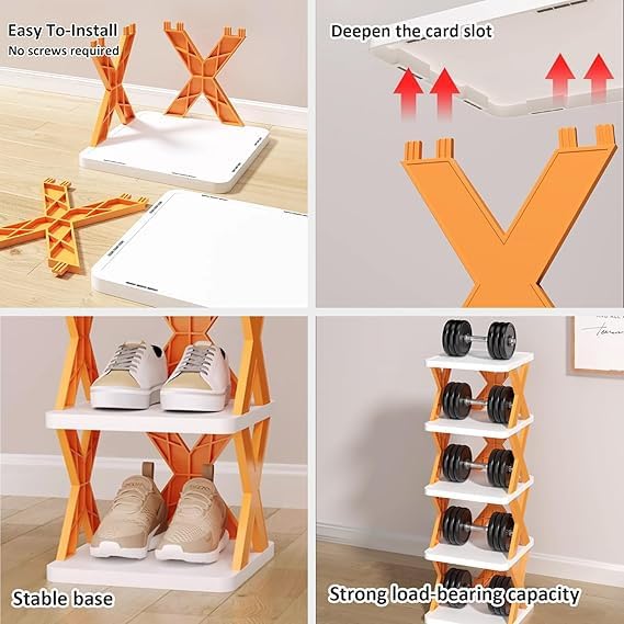 VERSATILE DESIGN: 4-tier shoe rack with X-shaped support structure, perfect for organizing footwear and accessories in living rooms, bedrooms, offices, and kitchens