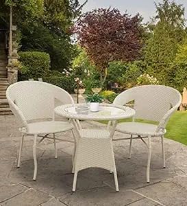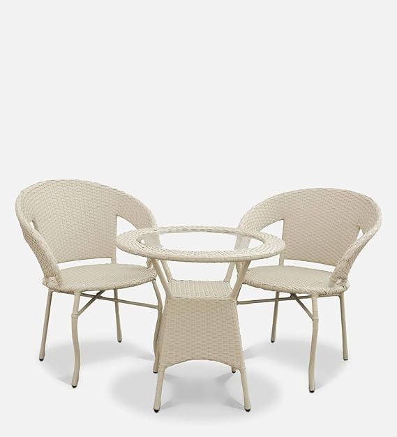 PRAJARI ENTERPRISE Patio Seating Chair and Table Set Garden Coffee Table Set with 1 Table and 2 Chairs Set Outdoor Furniture (Cream)
