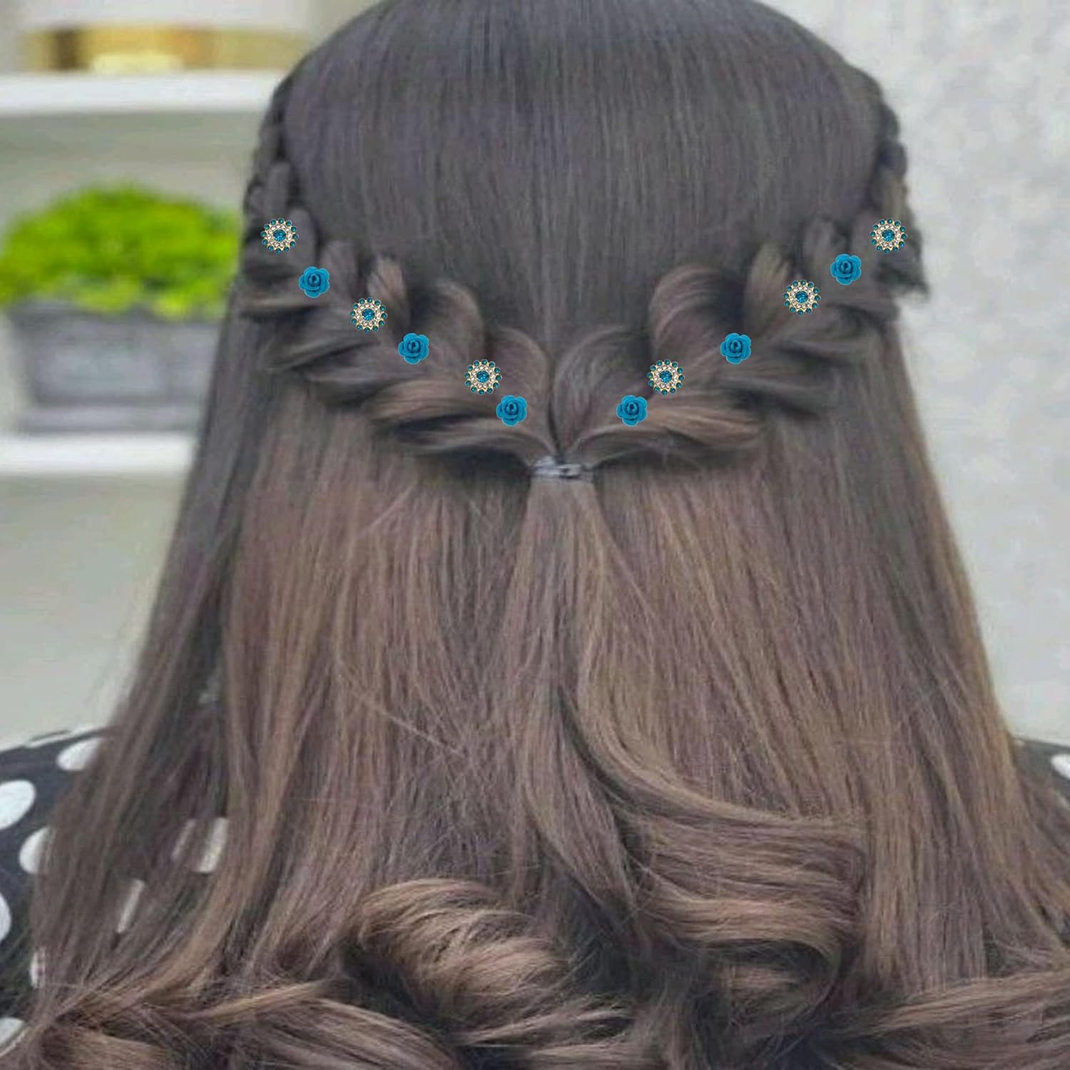 PRODUCTMINE Bridal Hair Bun Pin Accessories / Fancy Golden Juda Pins with Artificial Azure Blue Rose and Azure Blue Rhinestone for Women and Girls – Set of 16 PCs Fashionable Wedding Artificial Azure Blue Rose and Azure Blue Rhinestone hair clip Hair wear jewelry hair accessories for bride. Combination of Artificial Azure Blue Rose and Azure Blue Rhinestone Bun pins can give you a dazzling hairstyle for all occasions. Due to the difference between different monitors, the picture may not reflect the actual color of the item. Stylish Party U Pin for Women and Girls can be used with any hairstyle like Juda, french roll, braids, etc. These pins can be worn with all kinds of Outfits. Match with designer dresses, jeans and tops or gift to friends Fashion design, great and easy for you to DIY your hair style Useful and convenient to keep it with you, a good assistant for your makeup Bridal Artificial Azure Blue Rose and Azure Blue Rhinestone Bun pins are Suitable for Woman for various outfits for wedding, party and other special occasions Hair pin length: 6.5 cm Store it in Dry place away from moisture. Sales Package : Artificial Azure Blue Rose – 8 PCs and Juda Pins with Azure Blue Rhinestone – 8 PCs. MADE IN INDIA