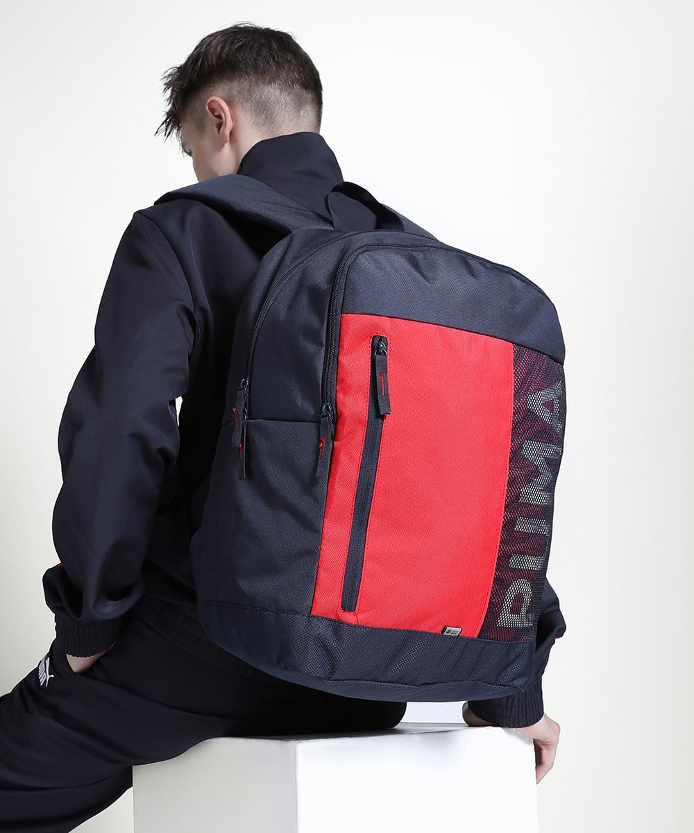 Puma , Unisex-Adult, Colorblock Backpack V3, Navy-For All Time Red, (9216101)