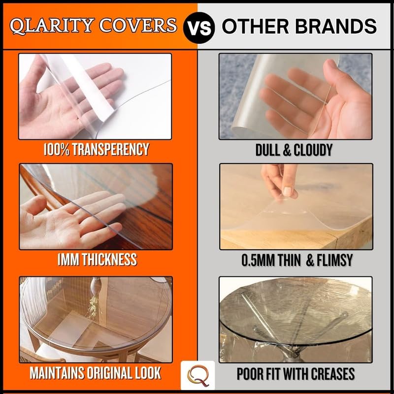 SUPER STRONG: 10X thicker than regular table covers. Anti-tear. Invest in a Qlarity Cover that lasts for years.
