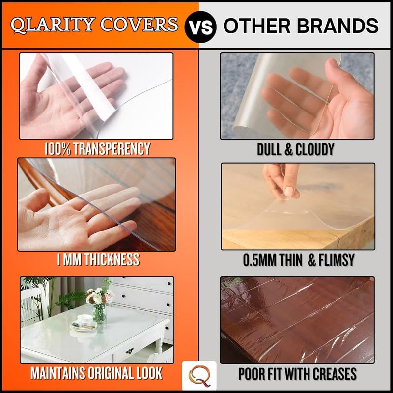 Qlarity Covers Clear 1mm Slim Shield Table Cover 68X46Inch (172.72X116.84cm) Dining PVC Table Cover 4/6 Seater | Anti-Slip, Water Resistant Transparent Table Protector | Customised Sizes, Rectangular