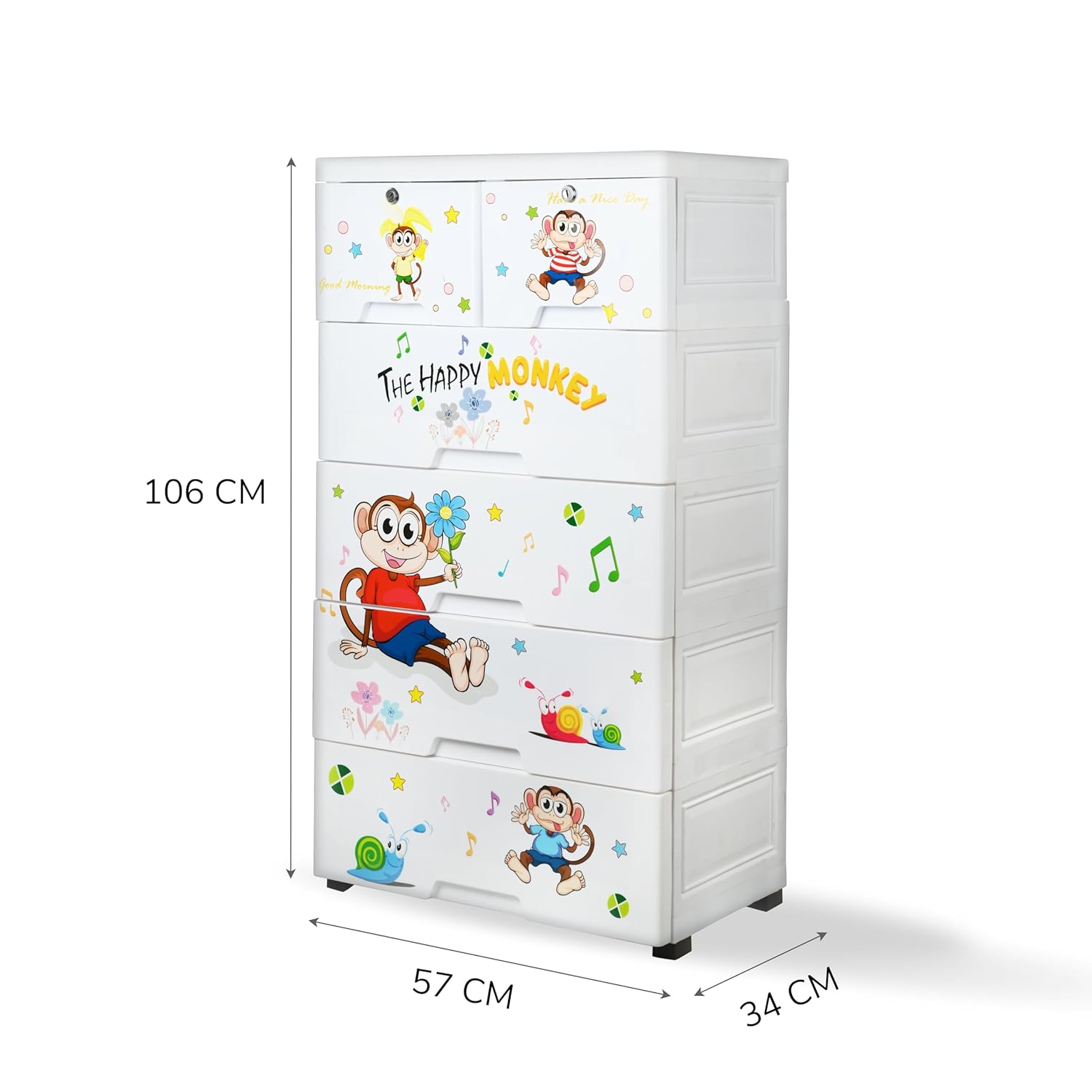 LARGE CAPACITY DRESSER:Overall dimension:23.62″W x 15.75″D x 42.52″ H,animal cute design,simple white color,good choice for placing in bedroom/playroom as kids dresser or baby dresser.