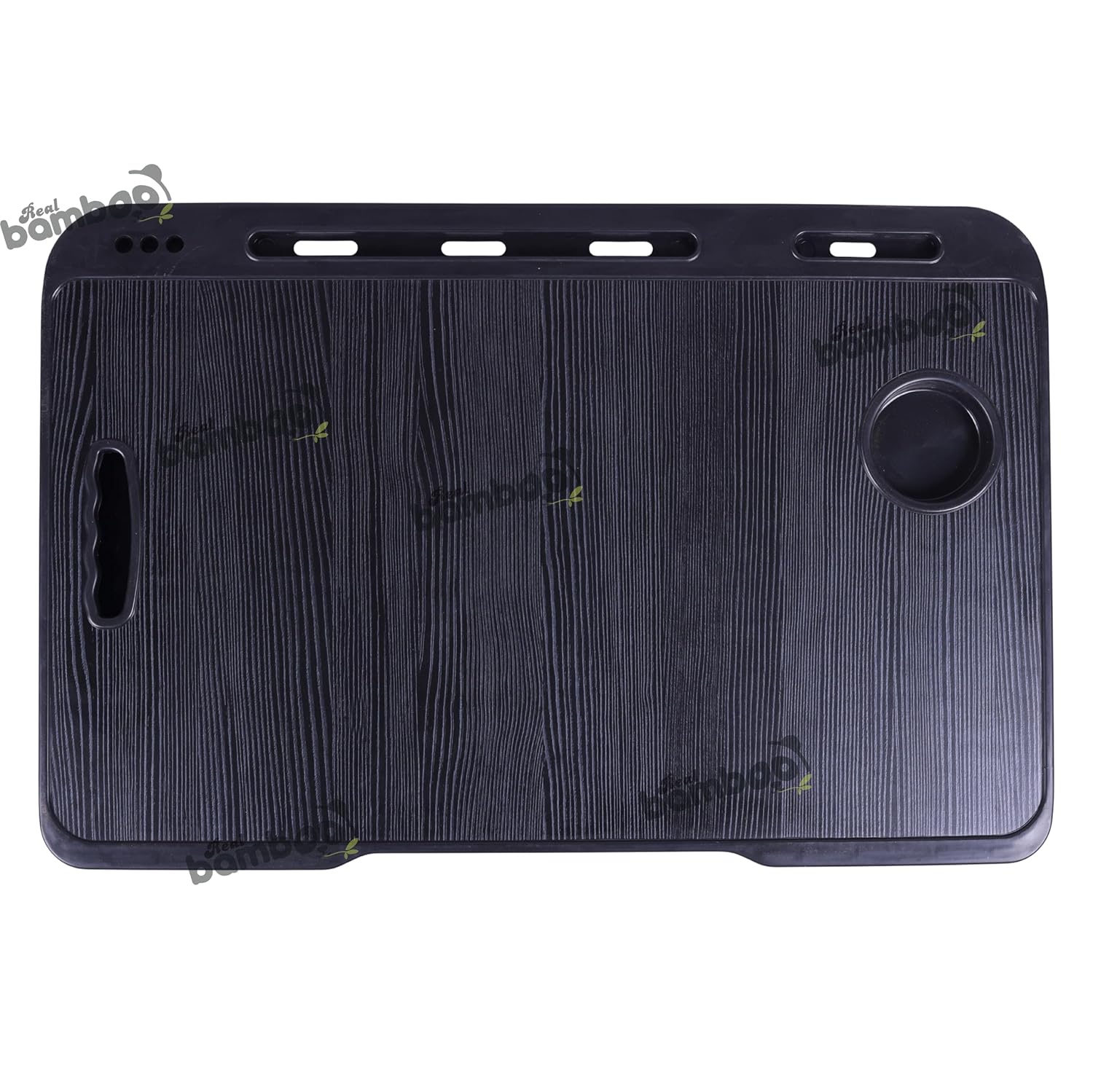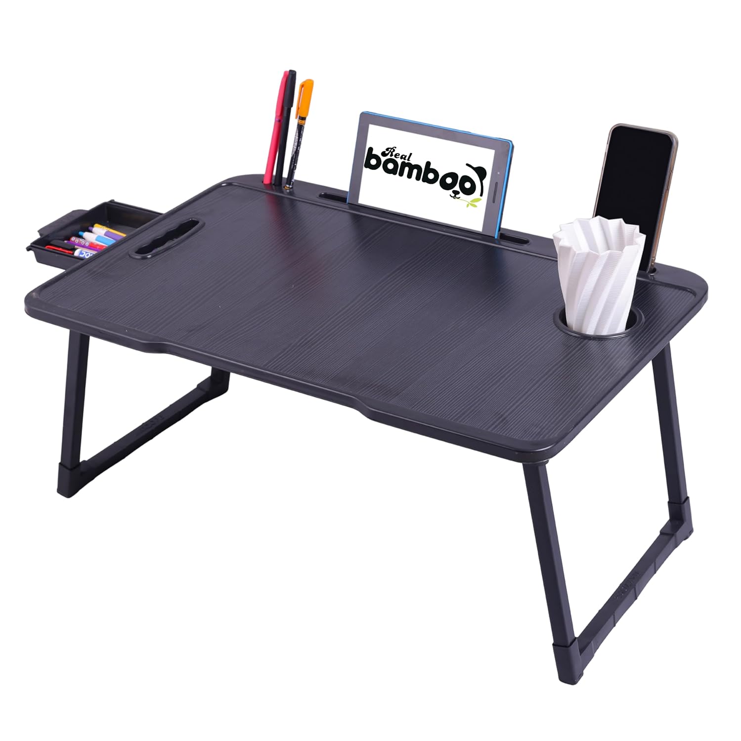 REAL BAMBOO Wood Smart Multipurpose Foldable Laptop Table with Cup Holder, Study Table, Bed Table, Breakfast Table, Portable,Ergonomic & Rounded Edges/Non-Slip Legs~~ (US Biding Black)