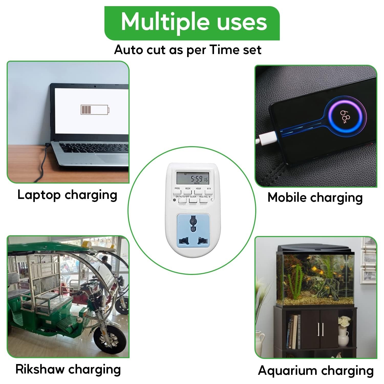 ✅【𝐏𝐫𝐨𝐝𝐮𝐜𝐭 𝐃𝐞𝐭𝐚𝐢𝐥𝐬】: Pack of 1 Energy Saving Socket Timer Switch | Voltage: 230V | Material: Plastic | Pin Type: 3 Pin | Display: LCD | Connector Type: Plug In | Colour: White | Voltage: | Special Feature: Digital Programmable, 24×7 Countdown Control| Digital Programmable Timer Socket Plug with Manual Programming & Auto On/Off Feature Ensuring Your Devices Only Operate When Necessary.