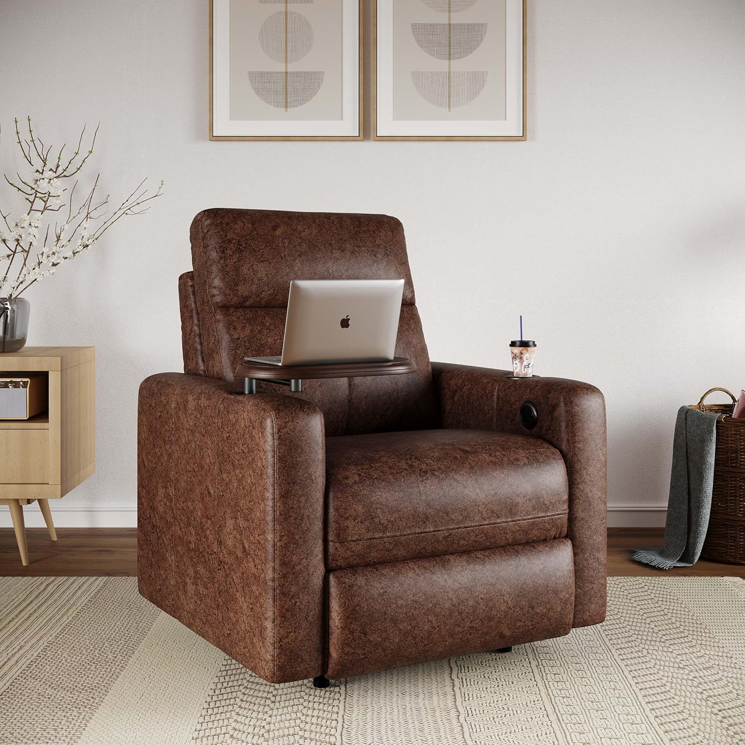 Transform your work-from-home experience with the Reclinex World Motorised Recliner Chair. This sophisticated brown recliner combines functionality with comfort, featuring a breathable fabric upholstery that ensures lasting comfort during long working hours. The chair comes equipped with thoughtful additions including a convenient cup holder and a practical laptop table, making it perfect for your home office setup. With unlimited reclining positions powered by its motorised mechanism, you can easily find your ideal position for working, reading, or relaxing. The chair’s design prioritises ergonomic support while maintaining a stylish aesthetic that complements any room décor. The smooth motorised operation allows for effortless position adjustments, while the durable construction ensures stability and longevity. Whether you’re attending virtual meetings, working on your laptop, or taking a well-deserved break, this recliner adapts to your needs throughout the day.