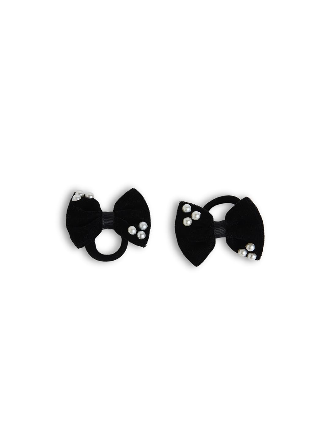 RIBBON CANDY Velvet Bow Hair Clip & Rubber Band Combo – Pearl Tic Tac Pins (Set of 2) with Matching Dual Bow Hair Ties – Stylish Hair Accessories for Girls – Black