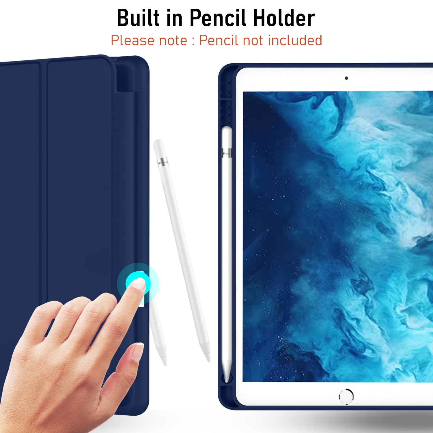 This flexible case is designed to fit the iPad 7th 8th 9th Generation 10.2 inch only, with built in pencil holder you can easily store and carry the apple pencil inside the case and easily access the pencil