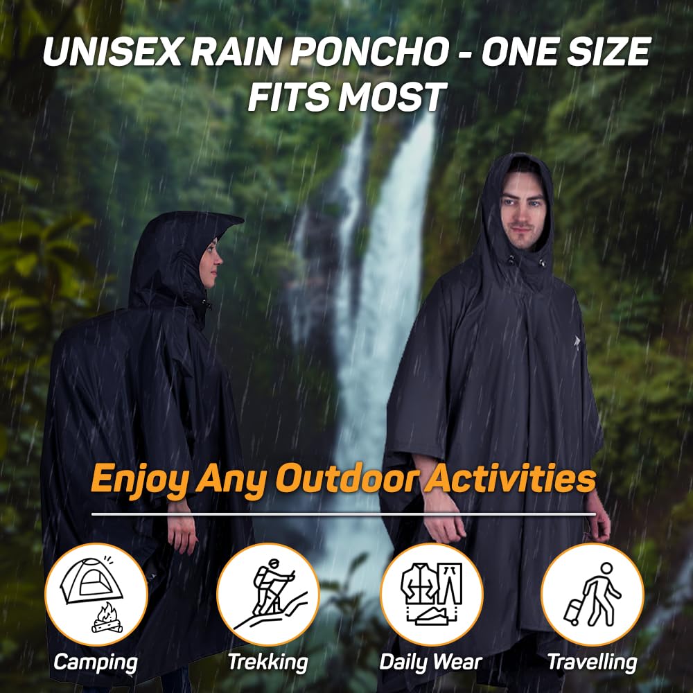 Rocksport Unisex Outdoor Rain Poncho for Adult,Multi Use, Waterproof, Lightweight, Reusable & Packable, One Size Fits Most