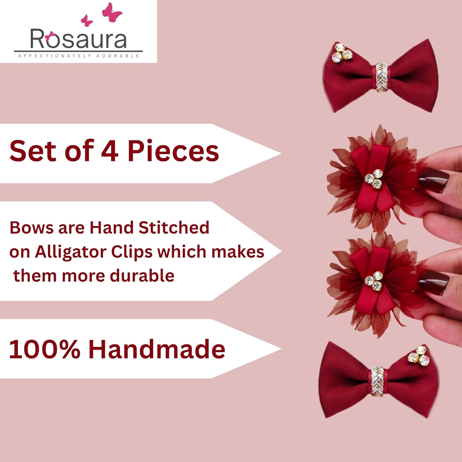 HANDMADE : All Rosaura Hair Clips for girls are meticulously hand crafted. Each hair bow clip is designed keeping comfort, quality and durability in mind. So its time to choose ROSAURA Grossgrain hair bow clips to elevate your toddler, infant, teen girl kid hair style effortlessly as our Fully covered Grossgrain hair clips are available in a variety of beautiful shades of Pink, Purple, Yellow, Magenta Green, Maroon and Rose Gold to match any occasion Like Birthday Party, Marriage , Christmas Eve, Holi, Diwali or Baby Shower.