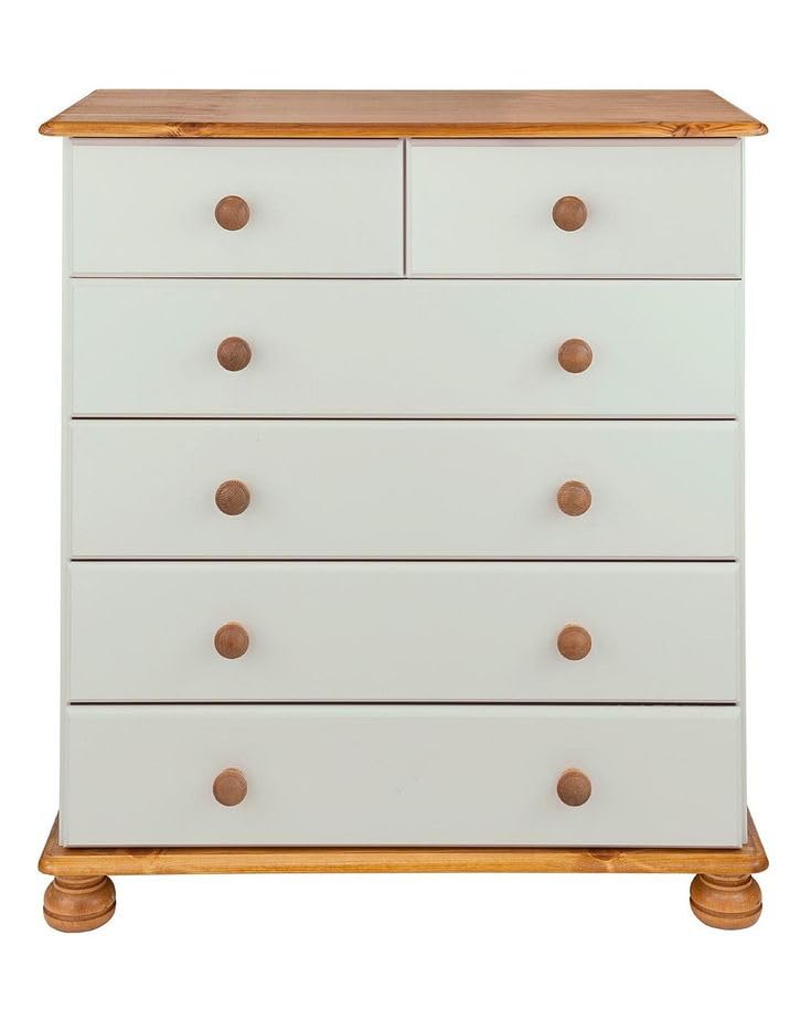 RUSTIC ROOTS Scalloped Wooden Chest of Drawers – 6 Drawer Dresser- Timeless Elegance for Your Home (White)