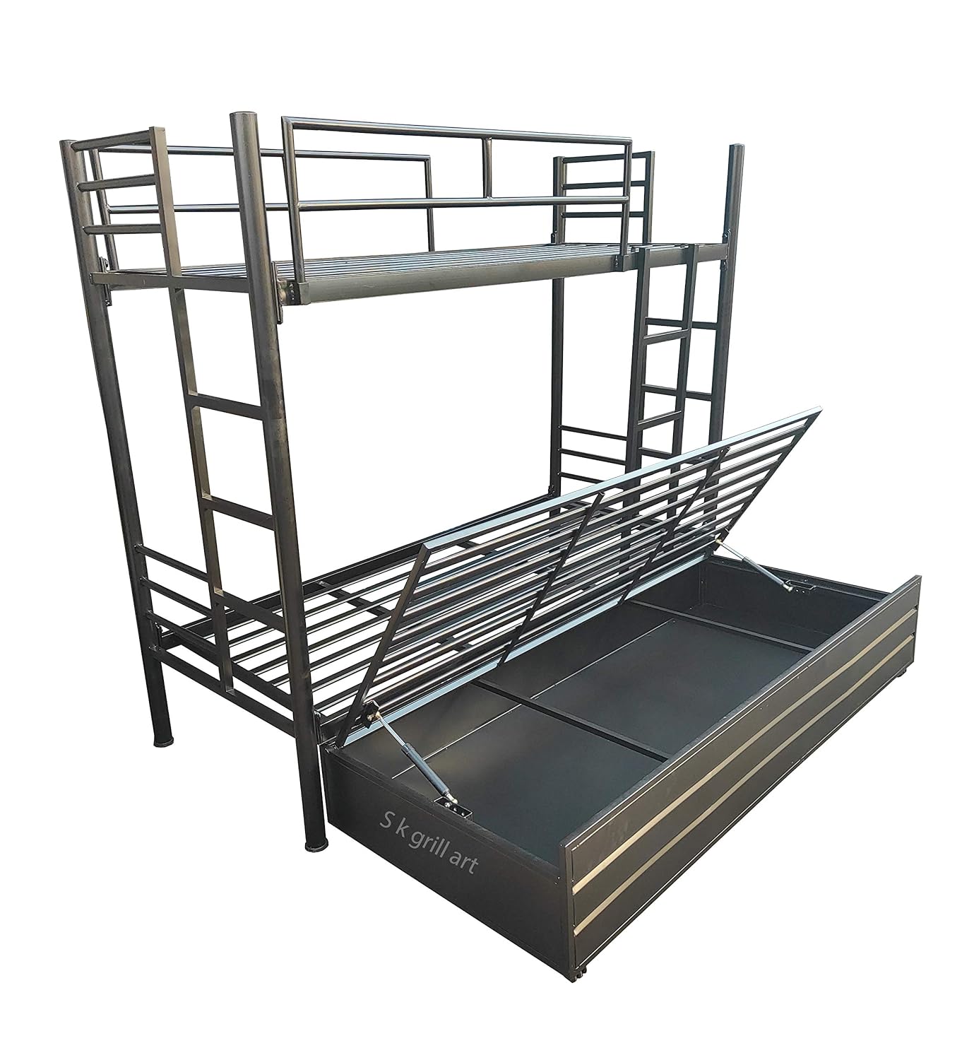 s k grill art Wrought Iron Bunk Bed with Storage Box Without Mattress for Adults Metal Frame (Black Powder Coated, 3 x 6 Feet)
