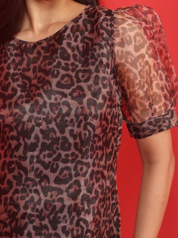 Salt Attire Stylish Parker Shift Midi Dress for Evening, Animal-Print Polyester Organza with Boat Neck, Elegant Core Collection Design, Made in India Multicolour