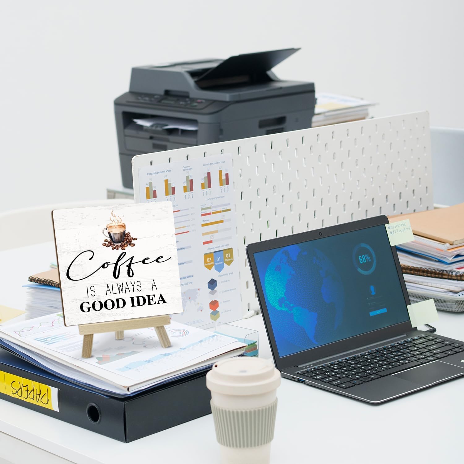 Sarvada Decor Coffee Corner Station Desk Decor Wooden Sign, Coffee is Always A Good Idea, Gift for Coworker Women Men, Home Office Kitchen Coffee Bar Decor Plaque Table Centerpiece
