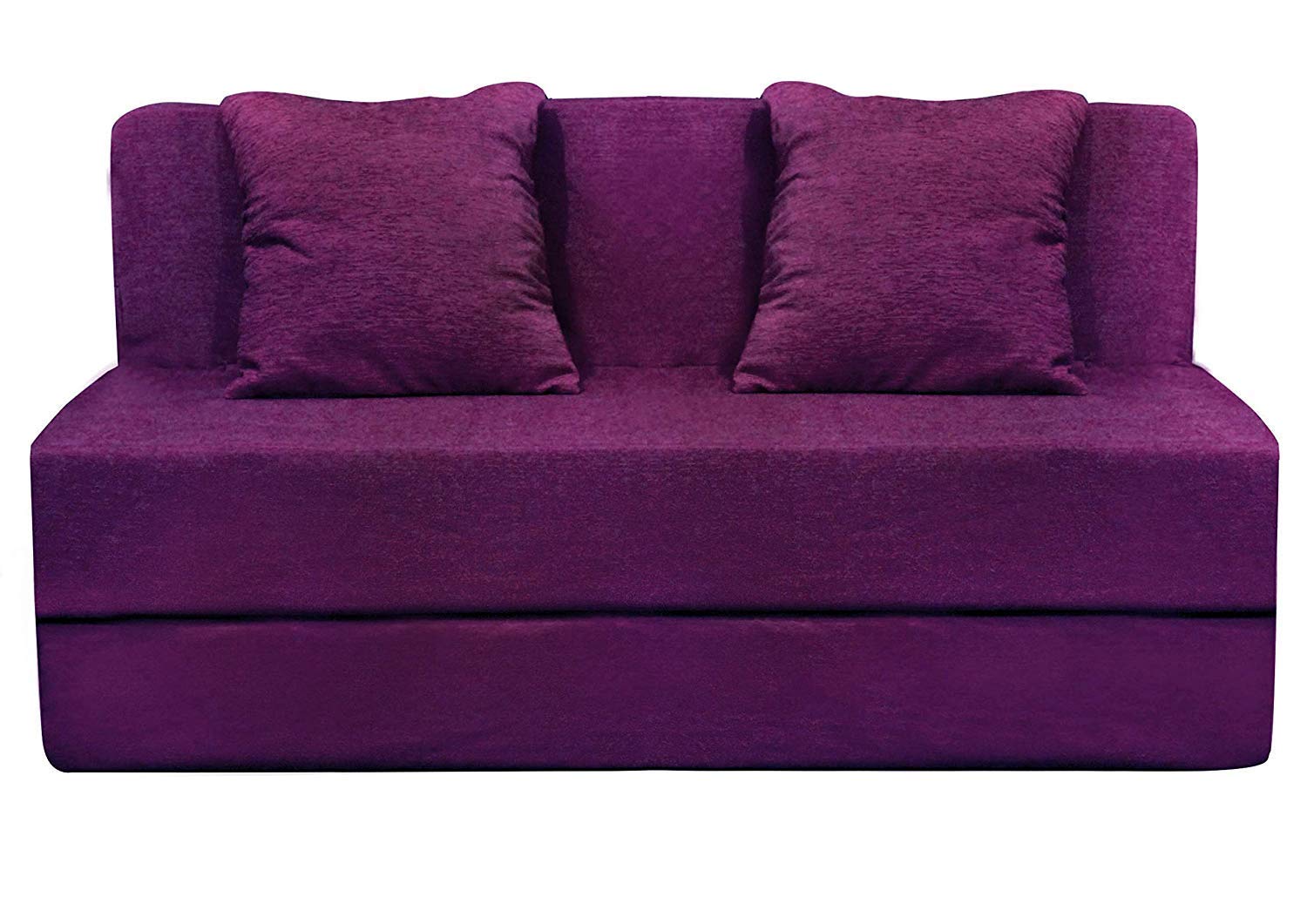 Screw & Art Foam 2 Seater Sofa Cum Bed | Washable Cover | 2 Cushions Thread Bare Pattern | Dark Grey | 4′ X 6′ Feet (Purple)