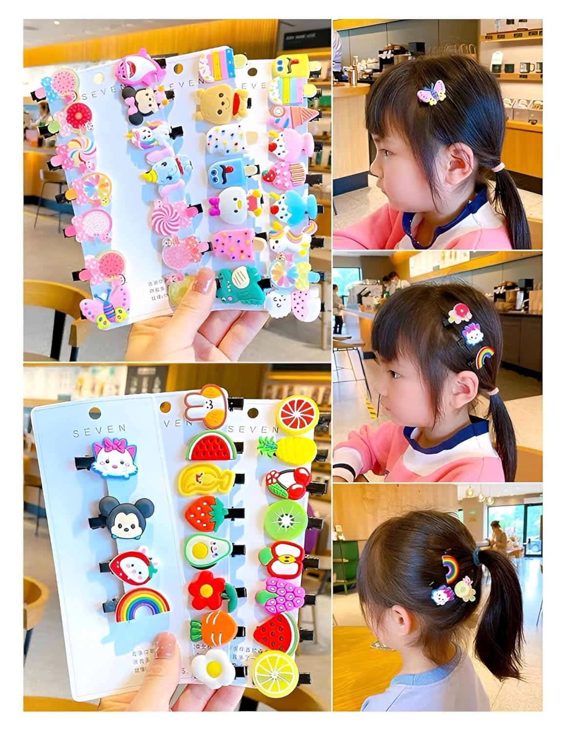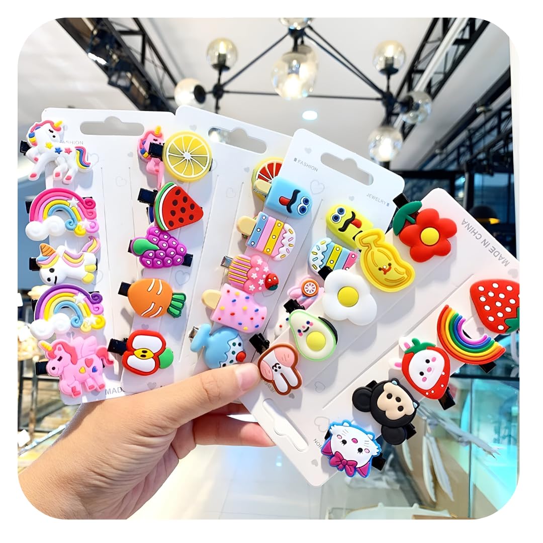 Set of 20 Cute Cartoon Hair Clips for Girls – Decorative Rubber Hair Accessories with Unicorn, Rainbow, Fruits, and Animal Themes