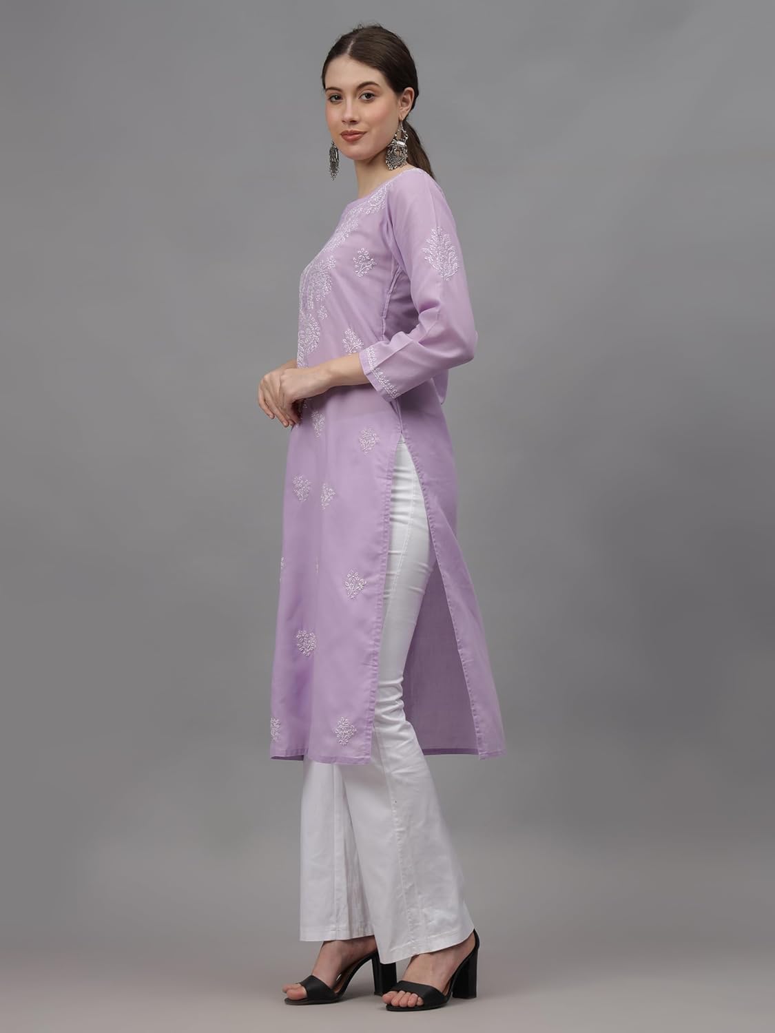 Seva Chikan Hand Embroidered Lucknowi Chikankari Cotton Kurta Kurti for Women SCL4655