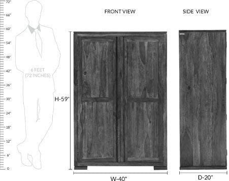Product Dimensions: Length (40 IN), Width (20 IN), Height (59 IN)Primary Material: Sheesham Wood, Color: Provincial Teak Finish, Style: ContemporaryThe Product Is Delivered In A Pre-Assembled State. Proudly Made in india by PIPERCRAFTS sheesham wood which is very durable and very strong wood.Elegant finish that gives it a charming look, Large and sturdy shelf with ample loading capacityThis solid wood wardrobe comes in pre assembled state. You can directly open the package and start using this wardrobe.