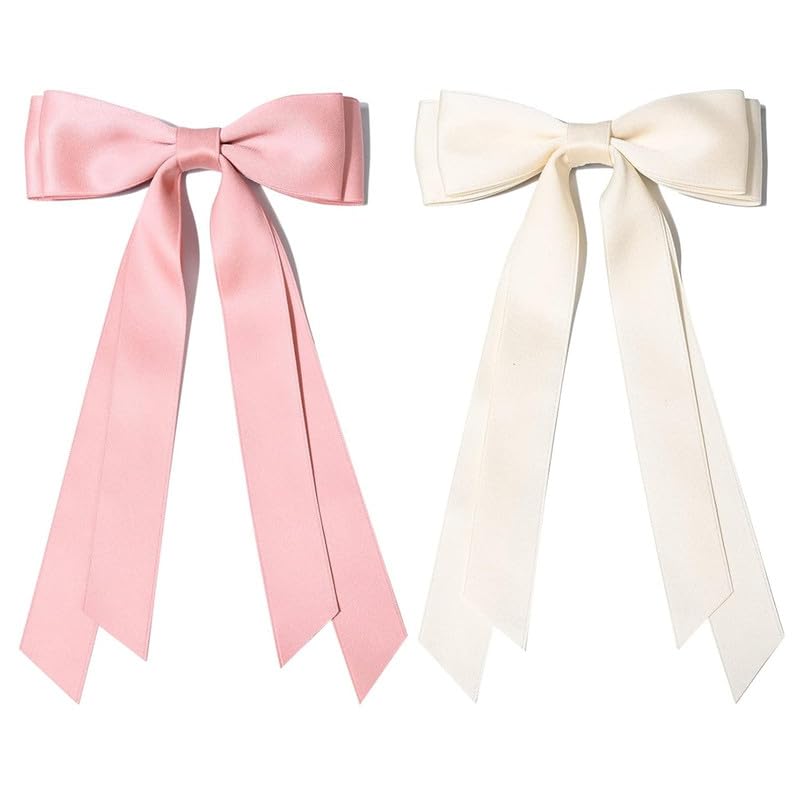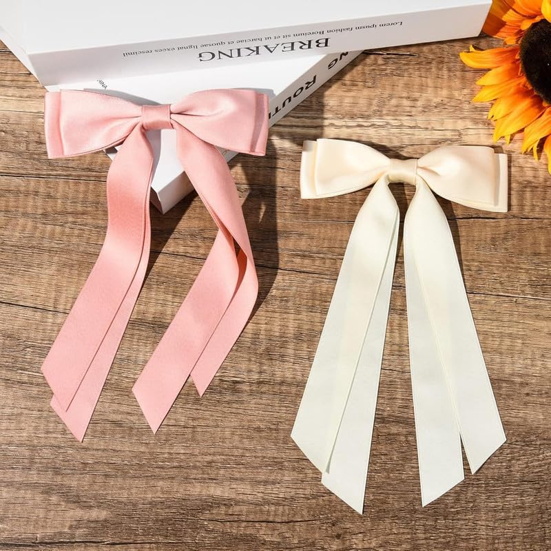 SUPER CUTE HAIR BOWS– 2pcs Beige Pink Silky Satin hair bows with different colors to match any of your outfit. These handmade hair bows for little girls suitable for all seasons.