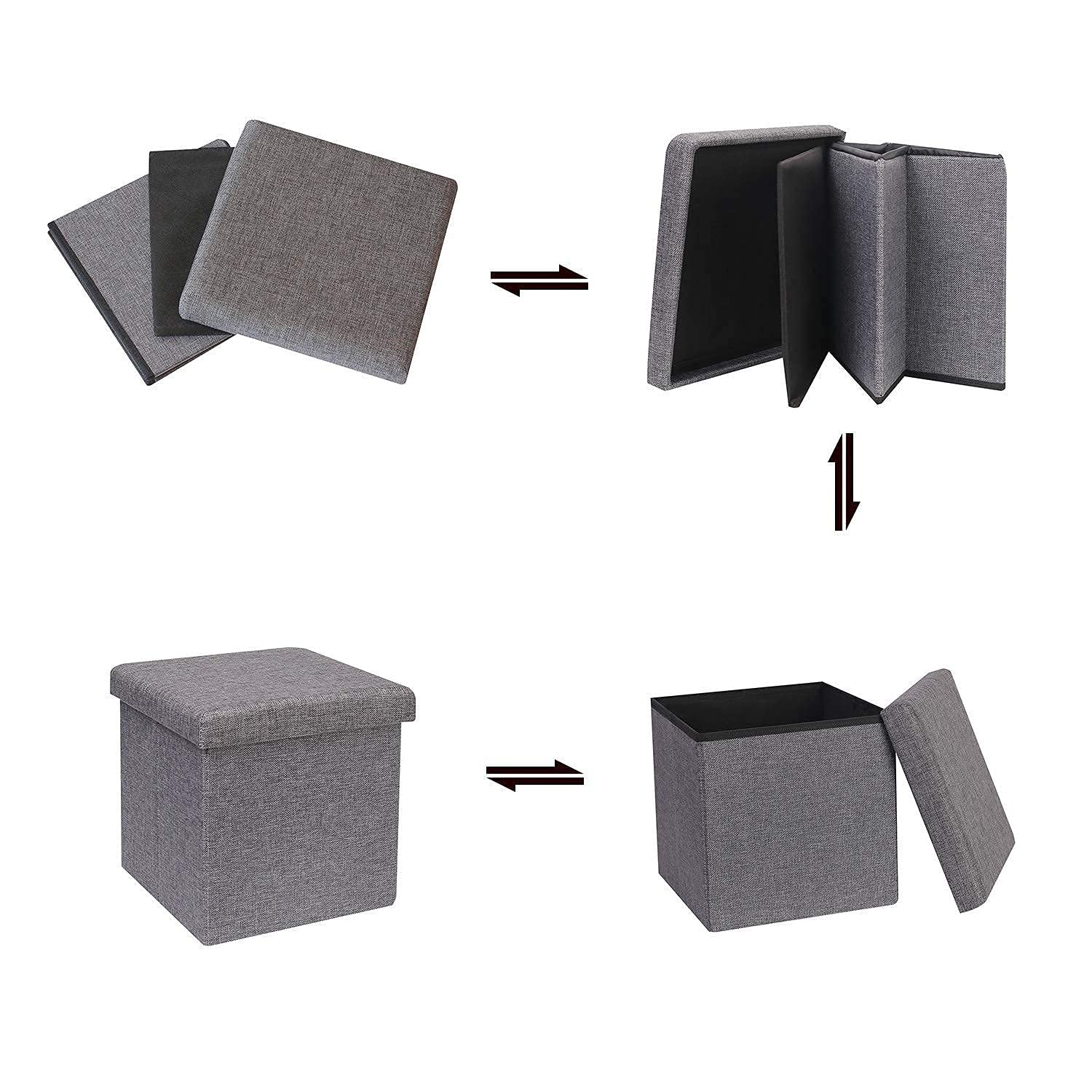 SILENCIO Wood Folding Organizer Storage Ottoman Bench Footrest Stool Coffee Table Cube, Camping Fishing Toys Chest Stool, Quick And Easy Assembly, 22L Capacity, Padded (Size: 30X30X30 Cm, Light Grey)