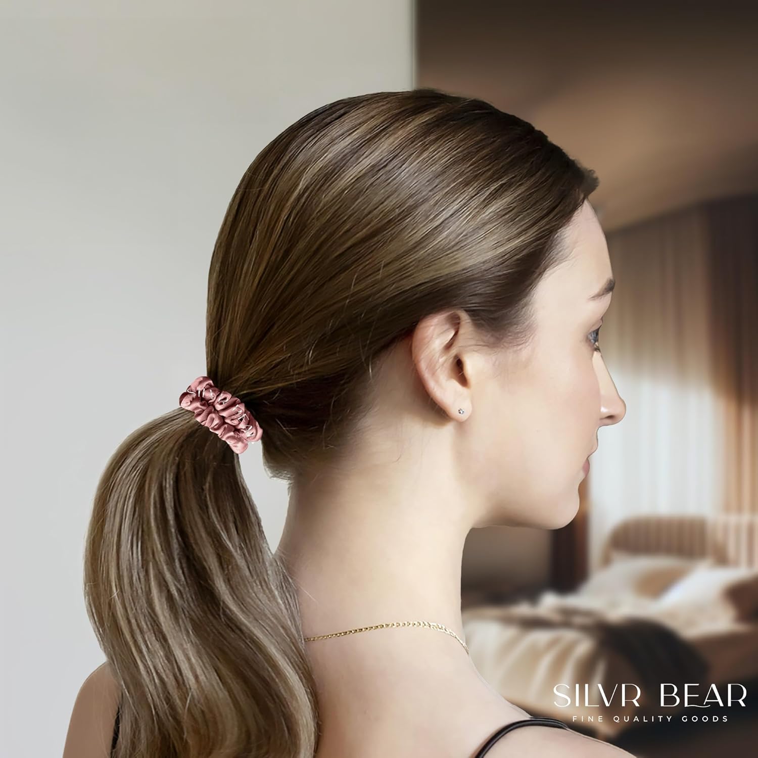 SILVR BEAR Luxury Satin Scrunchies SAME 6 COLORS AS PIC, Anti-Hair-Breakage, Hair Ties, Scrunchies Set for Girls, Women, Best gift for Sister, Friend, Mom (Classic Skinny)