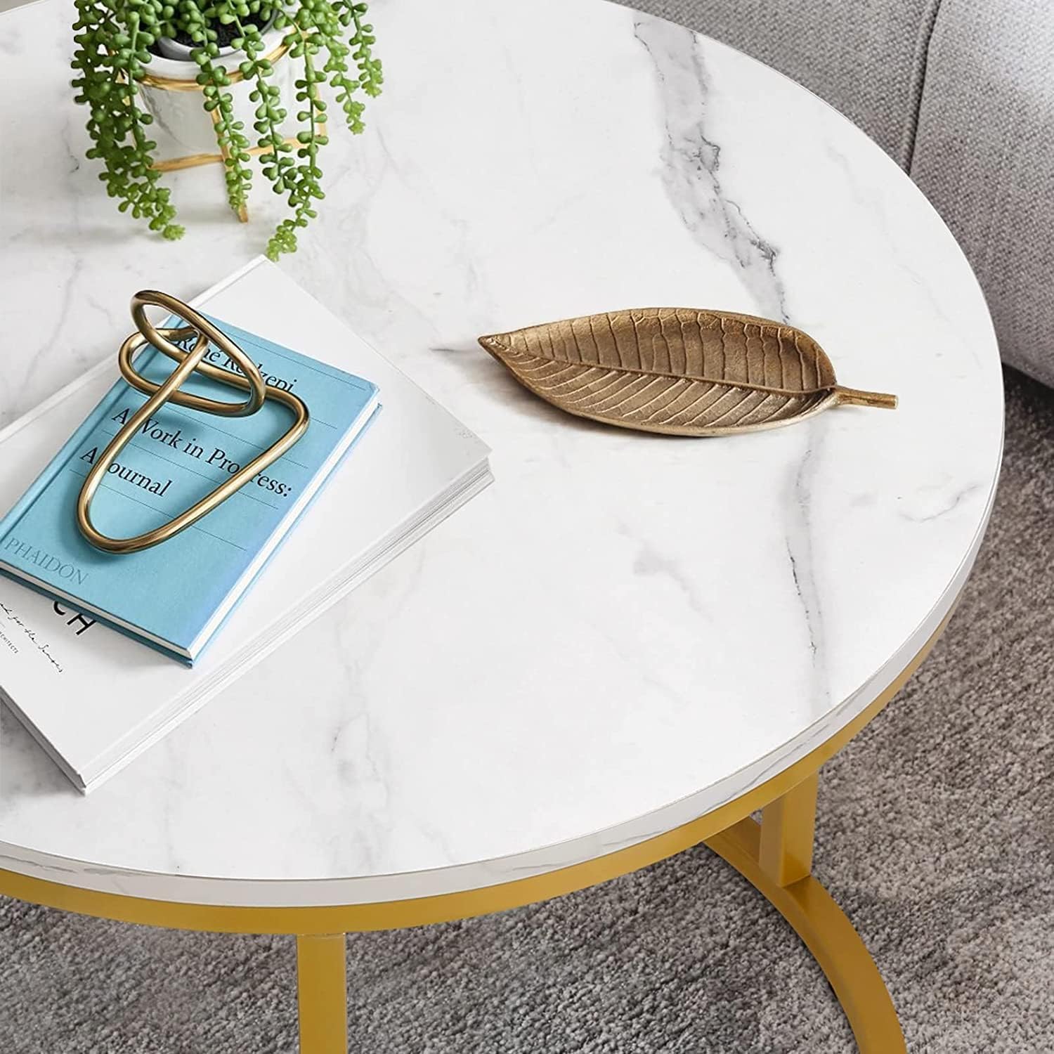 Skaffix Modern Center Table, Industrial Simple Nightstand, Living Room, Bedroom, End Table, Coffee Table Nesting Set of Two Round and Marble Side Table (White Gold)