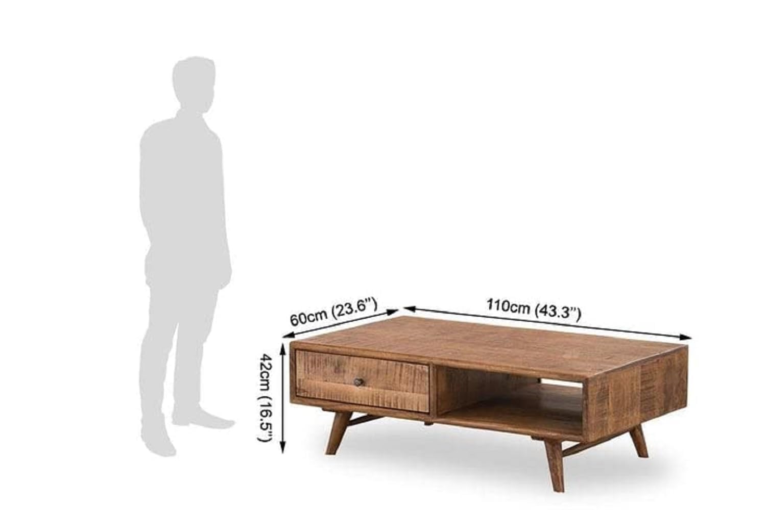 Crafted from pure mango wood, known for its durability and distinctive grain patterns.Features a textured top, adding a modern and visually interesting element to your living room.