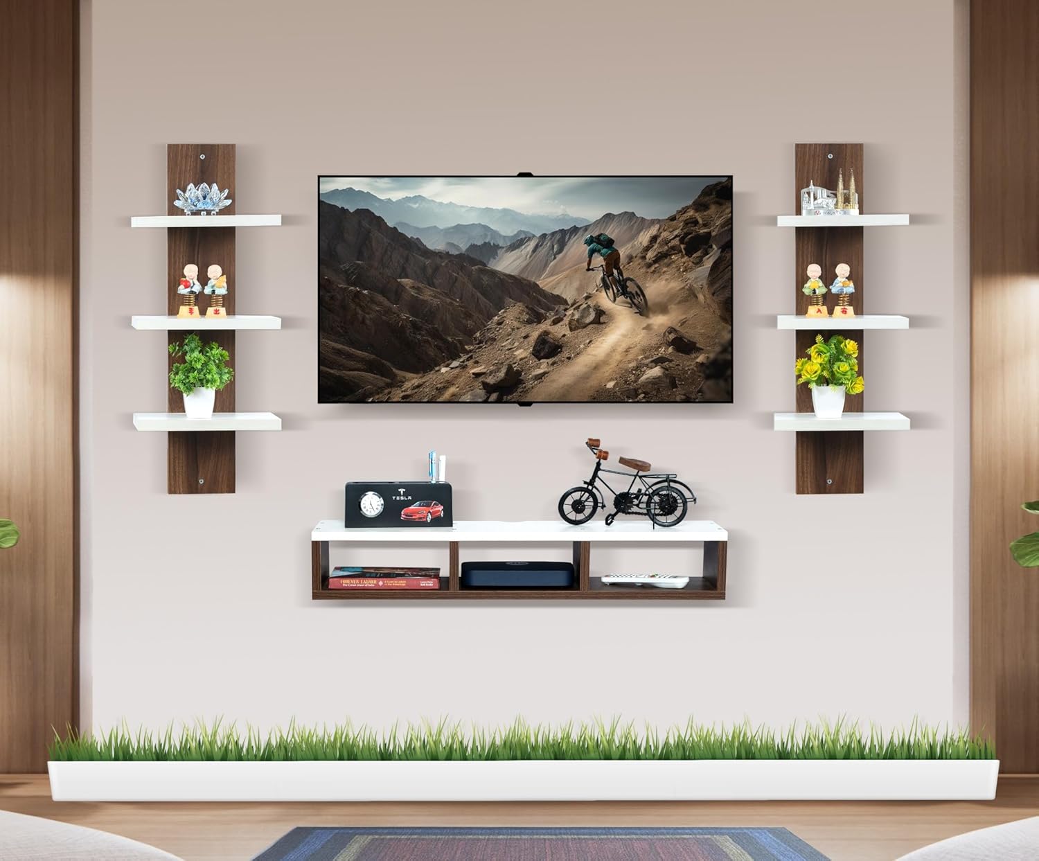 The Middle Compartment is Intended to Keep Your Set-Top Box While Books, Decorative Items & 4 Fully Functional Floating Open Shelves for Organize and Display Your Decorative Objects.