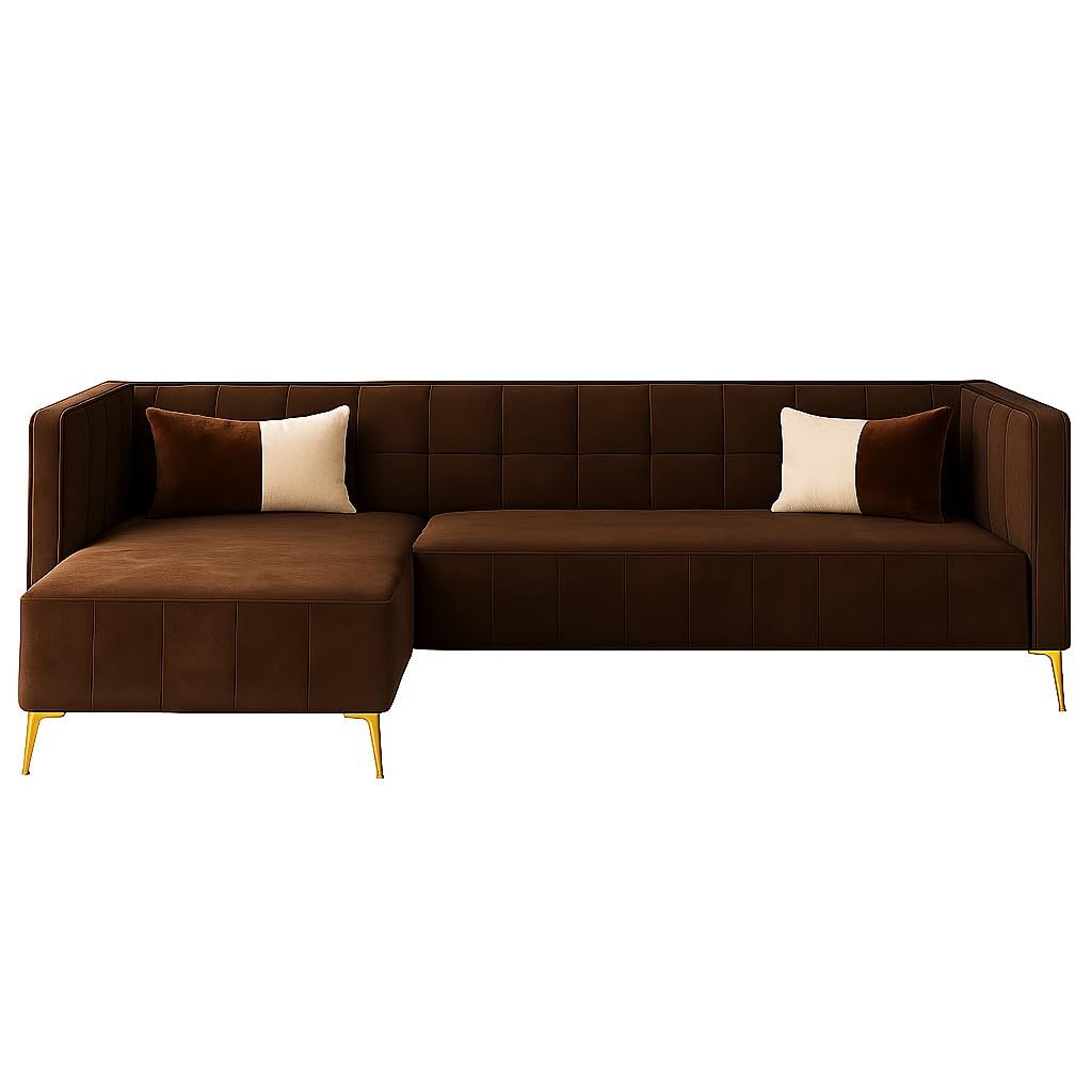 SOCOZI Stylluxe 6 Seater LHS L Shape Sofa Set | Soft Velvet Suede Fabric | Modern Design | Plush Comfort Cushions for Living Room (Brown)