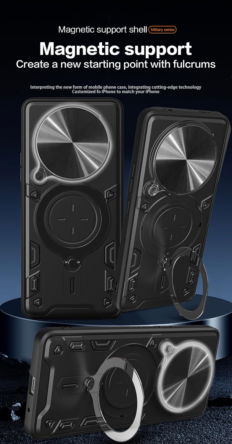 SPAZY CASE® Redmi Note 14 Pro Plus 5G Back Case | Hybrid Case with 360 Degree Rotating Finger Ring Holder + Slider Shutter Camera Protection Cover for Redmi Note 14 Pro Plus 5G – Black
