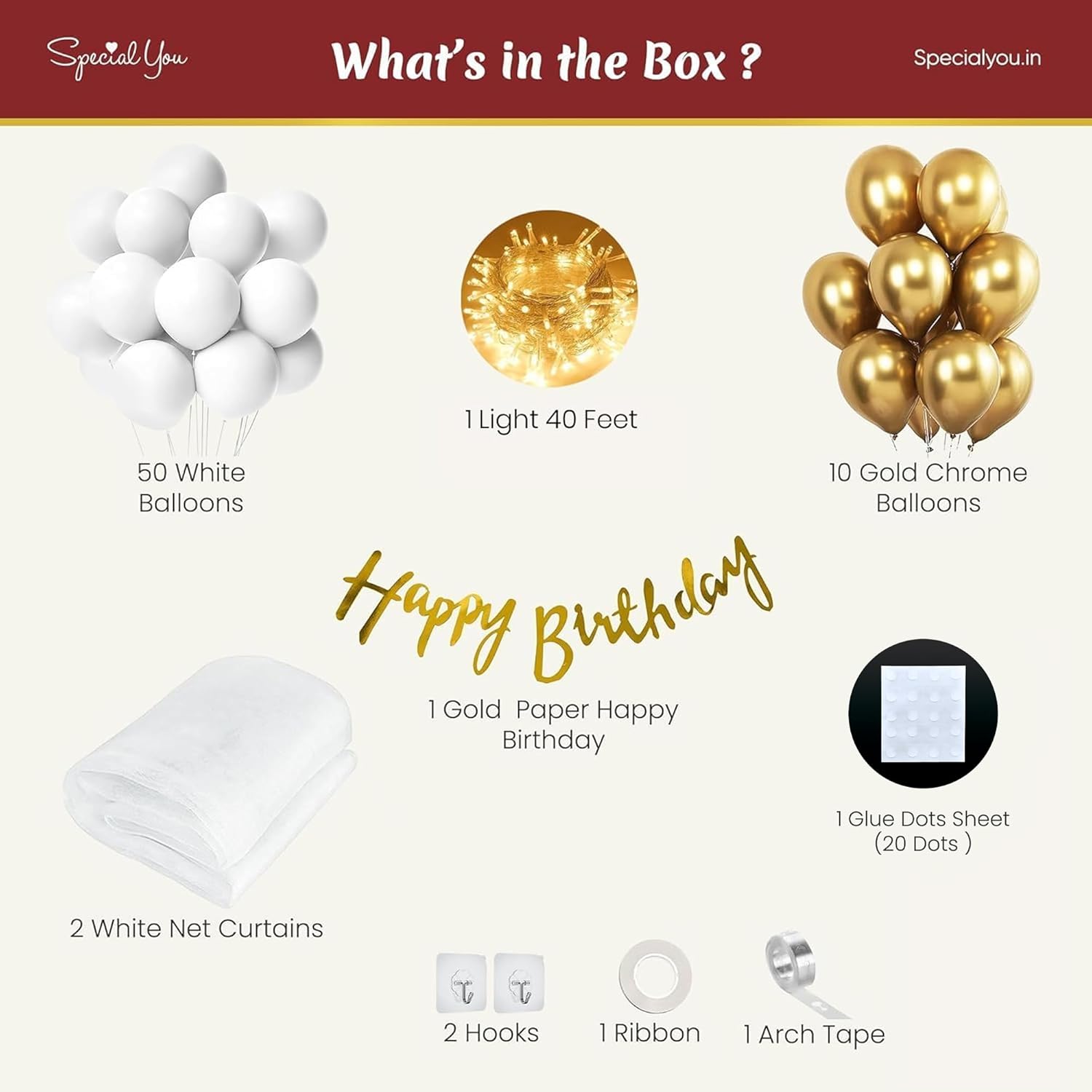 Elegant White and Gold Theme: Perfect for creating a chic and classy birthday party ambiance.