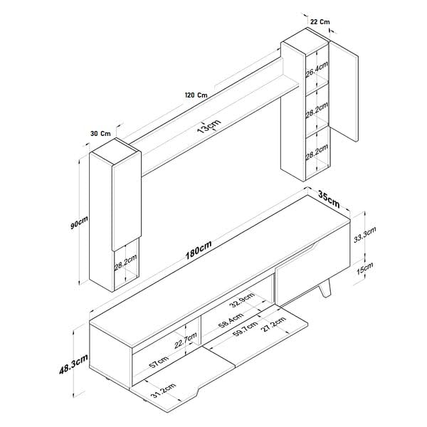 This versatile TV stand with shelves is the perfect addition to any living space, from the living room and bedroom to the dining room, kitchen, bathroom, office, den, guestroom, or kids’ room. Designed to be wall-mounted, this entertainment center offers a sleek and space-saving solution for organizing and displaying your television, media components, and decorative items. Featuring multiple shelves, it provides ample storage space for your electronics, books, and other essentials. Crafted with durable materials, this TV stand is built to withstand the demands of daily use while adding a touch of style to your home decor. Whether you’re looking to create a modern and minimalist aesthetic or complement an existing design scheme, this wall-mounted TV stand is a functional and stylish choice. Its versatility allows it to seamlessly blend into any room, making it a practical and visually appealing addition to your living space.