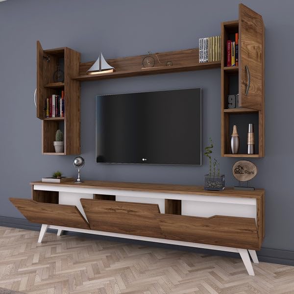 Spyder Home Decore Engineered Wood Craft Matte Finish M5 TV Unit with Wall Shelf TV Stand with Bookshelf Wall Mounted with Shelf Modern Leg, 180 cm Color: Brown || Assembly -DIY (Do-It-Yourself)